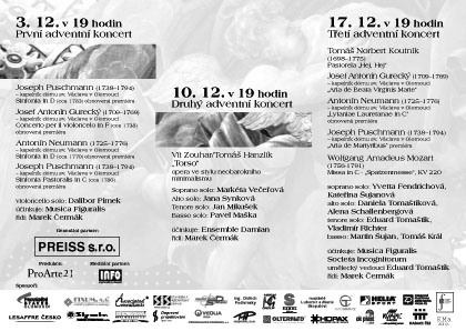 1. adventní koncert "Collegium Musicum" 2. adventní koncert "Opera semper viva" 3. adventní koncert "Ad maior dei gloriam"